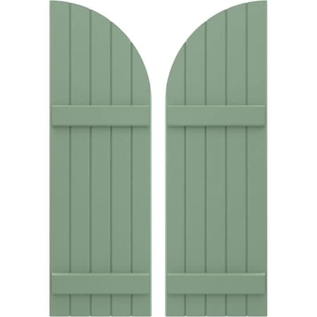 Ekena Millwork ARW101BQ518X53TGH Americraft Five 2 Exterior Real Wood Joined Board-n-Batten Shutters w/Arch Top (Per Pair), 17 1/2"W x 53"H, Track Green