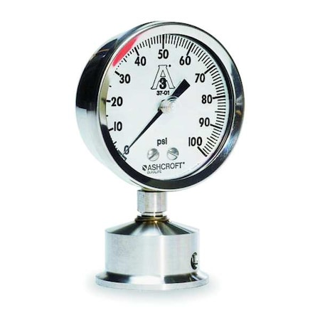 Ashcroft 2-1/2" Sanitary Pressure Gauge, 0 to 100 psi 25-1032S-15L-100-1 Each