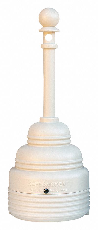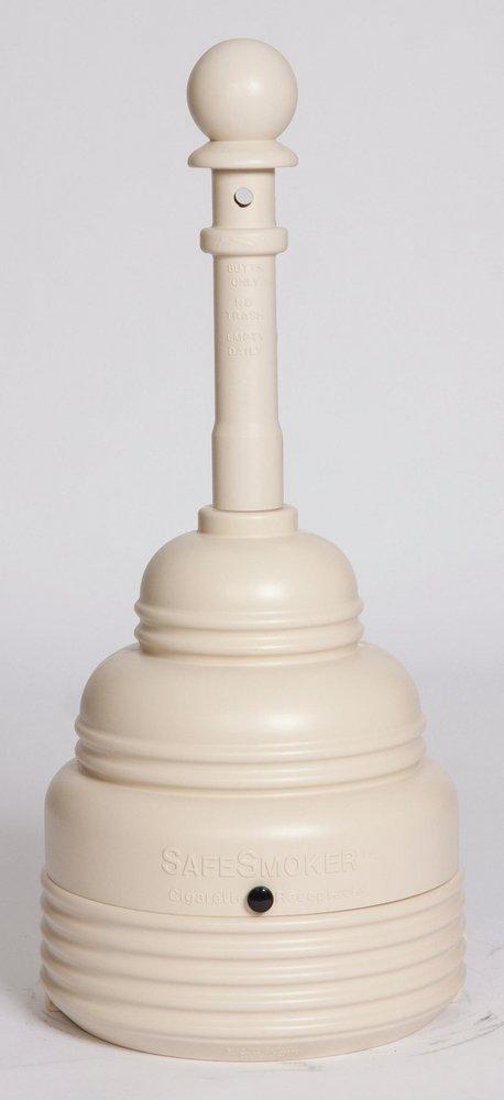 E421208BEIGE / 1208BEIGE CAN SAFE SMOKER BEIGE Eagle SafeSmoker Cigarette Receptacles With the increase in smoke free buildings, many nonindustrial facilities have created outdoor designated smoking areas. SafeSmoker Cigarette Receptacles are designed to complement any building and safely hold cigarette waste. Made of high density polyethylene with UV inhibitors, they also feature a flame retardant additive and galvanized steel collection buckets. The shape naturally restricts oxygen to quickly extinguish burning cigarettes, and the rain protective design keeps water out and reduces waste smells. Integrated holddown tabs offer security and wind protection. The top of the container removes easily to access and empty the internal bucket.