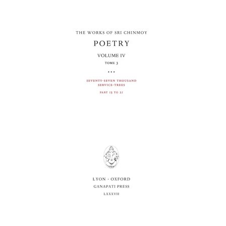 <p>"Seventy-seven thousand Service-Trees" is the third major poetry opus by spiritual Master Sri Chinmoy, written from 24 January 1998 until 2007.</p> <p>The seven tomes cover the entire series of 50,000 poems: </p> <p> Tome 1: Seventy-seven thousand Service-Trees, part 1-7<br /> Tome 2: Seventy-seven thousand Service-Trees, part 8-14<br /> Tome 3: Seventy-seven thousand Service-Trees, part 15-21<br /> Tome 4: Seventy-seven thousand Service-Trees, part 22-28<br /> Tome 5: Seventy-seven thousand Service-Trees, part 29-35<br /> Tome 6: Seventy-seven thousand Service-Trees, part 36-42<br /> Tome 7: Seventy-seven thousand Service-Trees, part 43-50</p> <p>This is a high-quality, hardbound edition, printed on acid free and lignin free paper; it meets all ANSI standards for archival quality paper.</p>