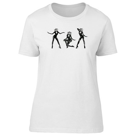 <ul> <li>Brand: Teeblox</li> <li>Sexy girl dancing and posing in latex suit.Vector art set.</li> <li>White T-shirt 100% COTTON </li> <li>Perfect for this spring season </li> <li>attractive,black and white,body,bold,dance</li> </ul><p>Country of Origin: Made in Mexico