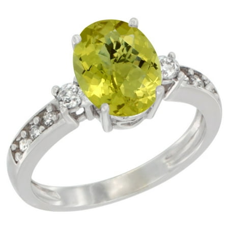 14K Yellow Gold Natural Lemon Quartz Ring Oval 9x7 mm Diamond Accent, sizes 5 - 10