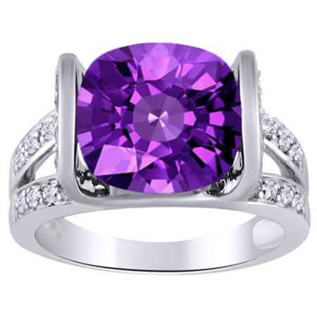 <ul> <li>Metal Type : 14k White Gold Over Sterling Silver GUARANTEED, Authenticated with a 925 Stamp</li> <li>Gem Type :- Simulated Amethyst (Lab Created); Simulated Topaz (Lab Created)</li> <li>Stone Shape :- Cushion Shape & Round Shape</li> <li>Stone Setting type :- prongs</li> <li>Stone Clarity :- VVS1-VVS2 & VVS1-VVS2, Stone Color :- Violet; White</li> </ul>