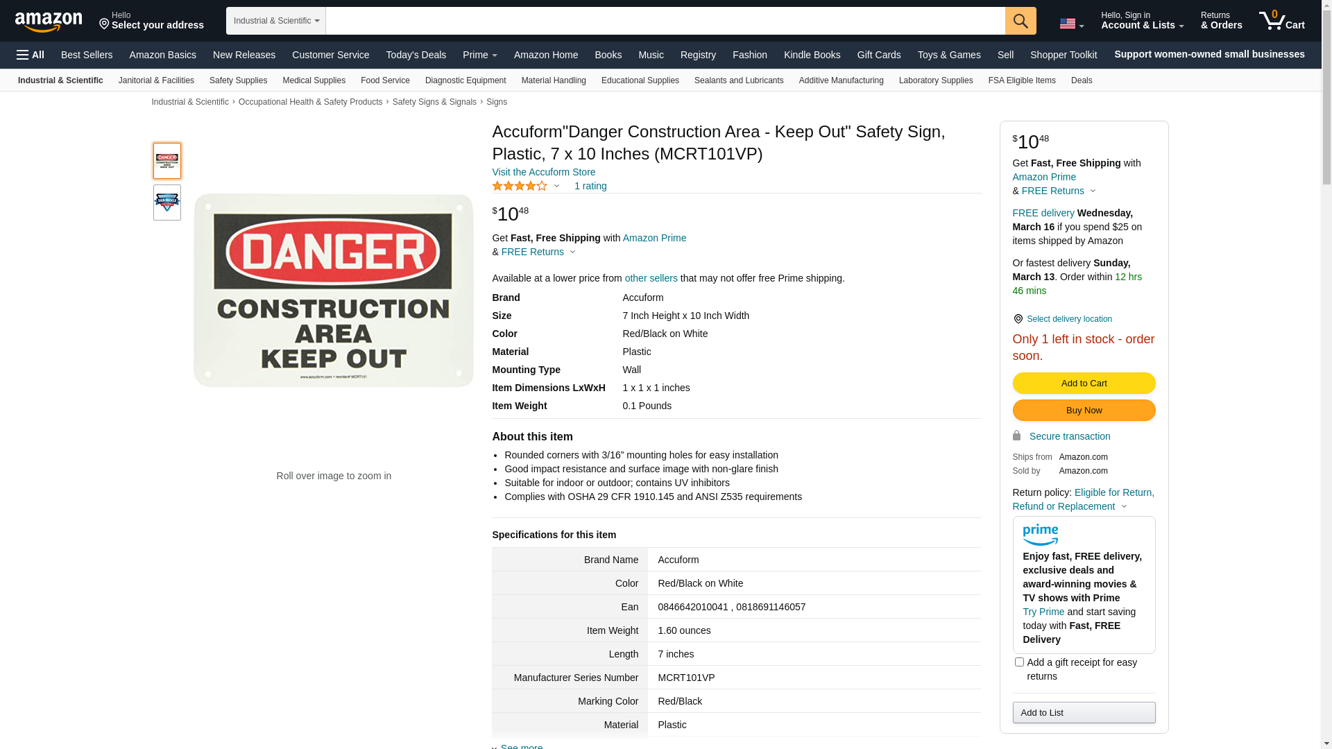 Accuform MCRT101VP, 7" x 10" Plastic OSHA Sign: "Danger Construction Area Keep Out" Warn others that your construction area is off-limits with a bold safety sign. Plastic (VP) Plastic combines standard, reliable performance with 92% recycled content to create a dependable, Earth-friendly material solution. Semi-flexible, impact-resistant plastic signs are ideal for standard-duty use for installation indoors and for protected, short-term outdoor applications. Get the look, feel and characteristics of non-recycled plastic signs in an environmentally friendly version.