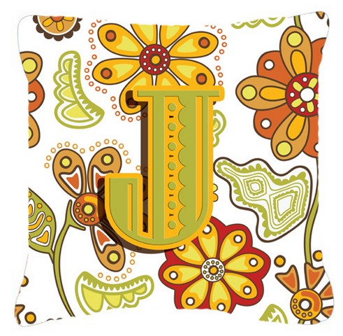 Carolines Treasures CJ2003-JPW1414 Letter J Floral Mustard And Green Canvas Fabric Decorative Pillow