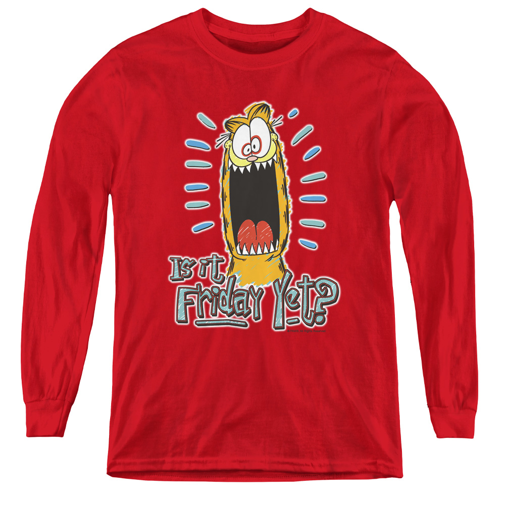 Trevco GAR468-YL-1 Garfield & Friday Youth Long Sleeve T-Shirt, Red - Small