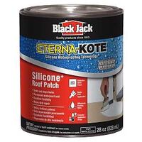 Black Jack Eterna-Kote Silicone Roof Patch is a heavy duty, white rubber sealant that provides the ultimate waterproofing protection from the elements. This product has exceptional adhesion and flexibility and is compatible with most building materials. Use to make repairs on damaged roof areas. In hot or cold climates, this waterproof seal will permanently stretch to prevent cracking and peeling.; ; Brand Name: Black Jack Sub Brand: Eterna-Kote Sheen: Gloss Color: Bright White Coating Material: Silicone Product Type: Roof Patch Container Size: 28 oz VOC Level: 10 g/L Coverage Area: 3 sq ft Durability: 50 Years Color Family: White Fiber Reinforced: No Water Based: No Transparency: Solid Packaging Type: Can Cold Application: Yes