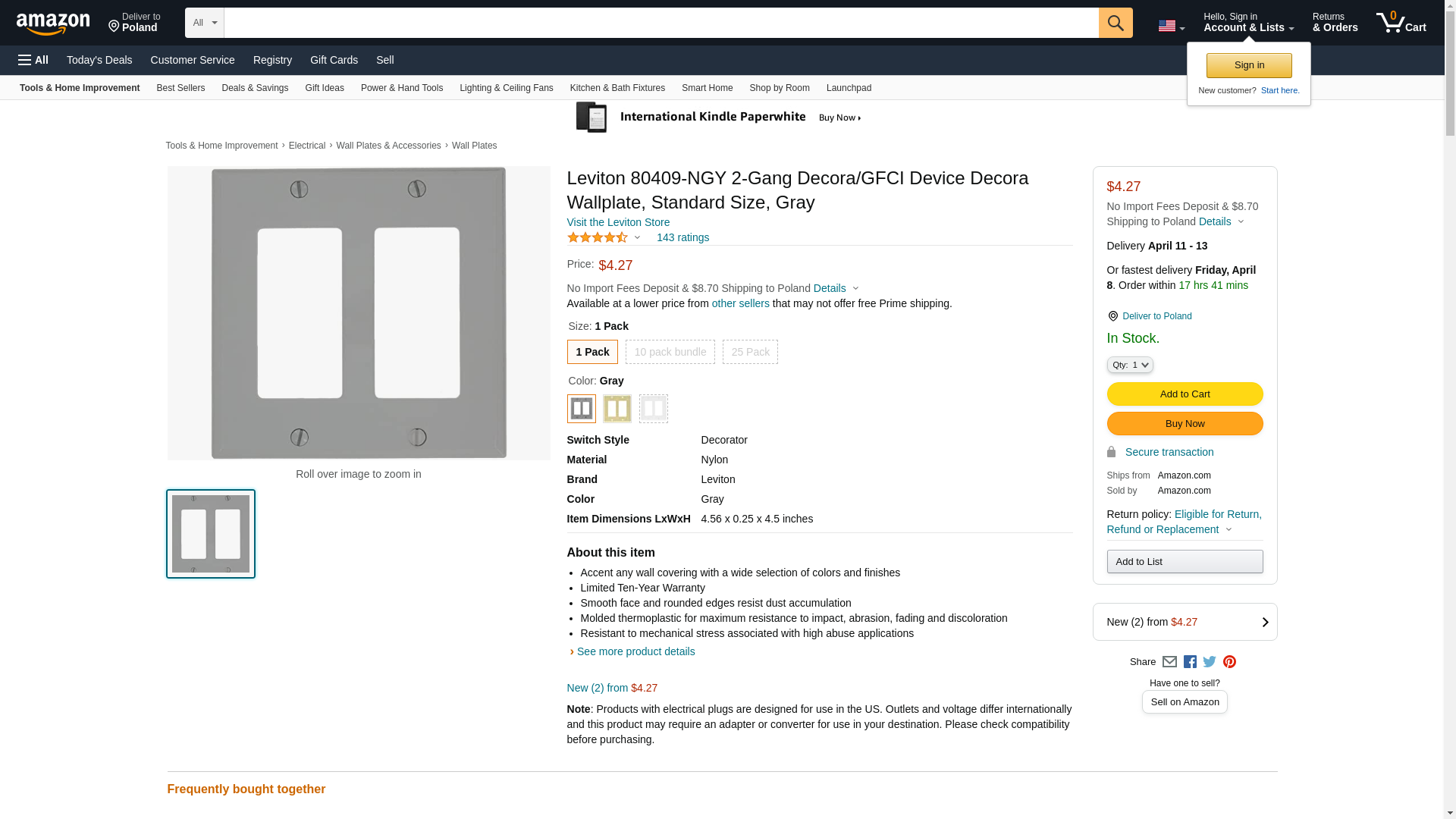 ![]() gordonelectricsupply.com | 80409-NGY | 1 | Leviton Orders Over $750 Usually Ship the Next Day, Otherwise3-5 Days | 1 | 1 @ $1.18 |