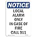 OSHA Notice Sign, Local Alarm Only In Case Of Fire, 7in X 5in Decal