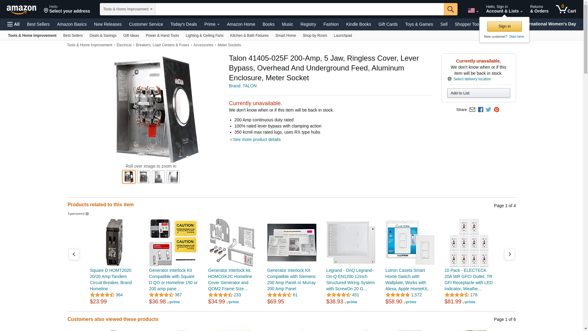 Talon 41405-025F 200-Amp, 5 Jaw, Ringless Cover, Lever Bypass, Overhead And Underground Feed, Aluminum Enclosure, Meter Socket