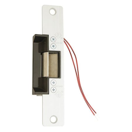'Electric Strike, For Use With Cylindrical Locksets with Deadlatches, Performance Heavy-Duty, Failure Mode Fail Safe or Fail Secure, Input Voltage 12VDC/24VAC, Door Frame Type Metal/Wood, Faceplate Width 1-1/4 In., Faceplate Height 6-7/8 In., Grade 1, Fire Rated No, Finish Aluminum, Material Stainless Steel, Bolt Throw 1/2 In. to 5/8 In., Standards ANSI/BHMA Type EO9328, Includes Mounting Hardware'
