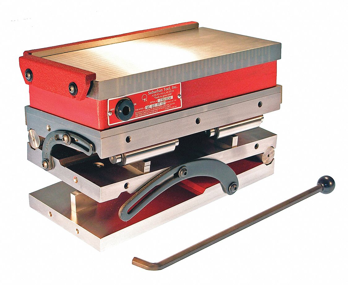 Sine Plate, Compound Style Yes, Precision Yes, Length 6 in, Width 12 in, Height Closed 6 13/16 in, Ground Finish, Tilting Angle 0 Degrees to 45 Degrees , Squareness 0.0003 in, Parallelism 0.0003 in, Features Fine Pole