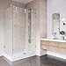 | Feature | Frameless glass design, 36.125-in. W x 36.25-in. L x 76.75-in. H, Door swing: 24.625-in., Chrome hardware finish |
