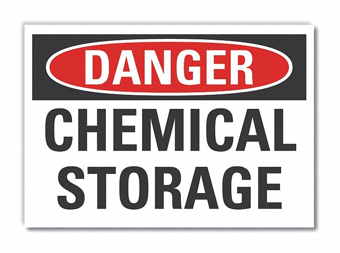 Chemicals Danger Reflective Label, Horizontal Rectangle, Number of Printed Sides 1, English, Sign Format Traditional OSHA, Sign Legend Chemical Storage, Sign Legend Background Color White, Sign Legend Style Text