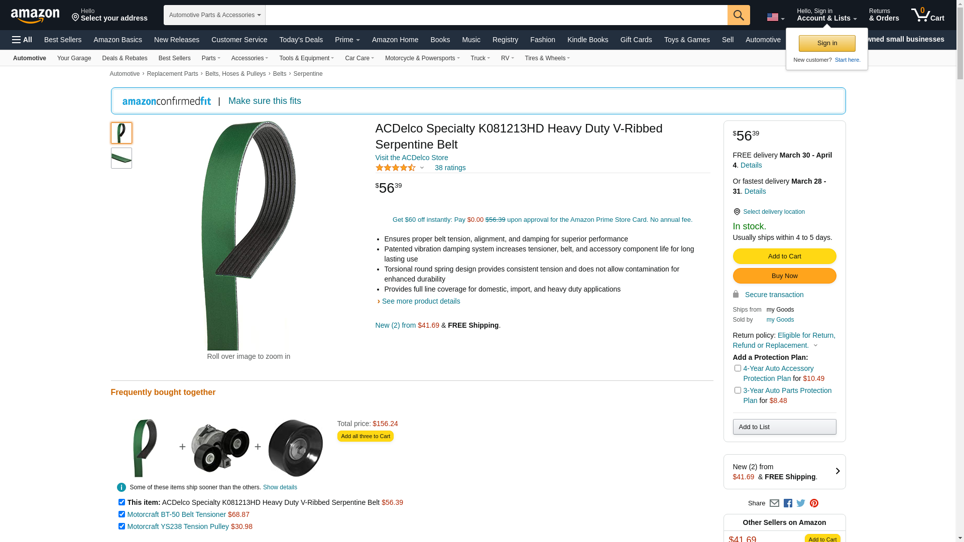 ![]() StockWise Auto | DEL-K081213HD | 1 | 1 | 1 @ $41.39 | |