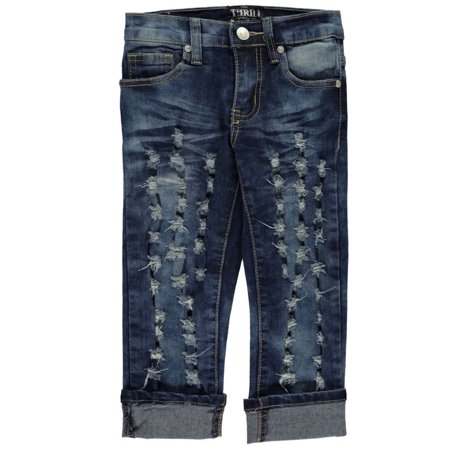 She'll love the stylish distressed accents on these Thrill jeans! <ul> <li>Thrill jeans</li> <li>Stretch denim construction</li> <li>Whiskered wash</li> <li>5-pocket design</li> <li>Button-and-zip fly</li> <li>Ripped and slashed accents</li> <li>Rolled cuffs</li> <li>55% ramie, 26% cotton, 17% polyester, 2% spandex</li> <li>Machine wash warm</li> <li>Imported</li> </ul>