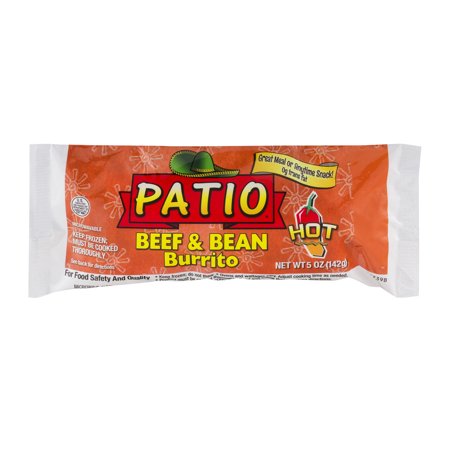 <ul> <li>Patio Hot Beef & Bean Burrito.</li> <li>Great meal or anytime snack!.</li> <li>0g trans fat.</li> <li>U.S. Inspected and Passed by Department of Agriculture EST 9887.</li> <li>Microwavable.</li> </ul>