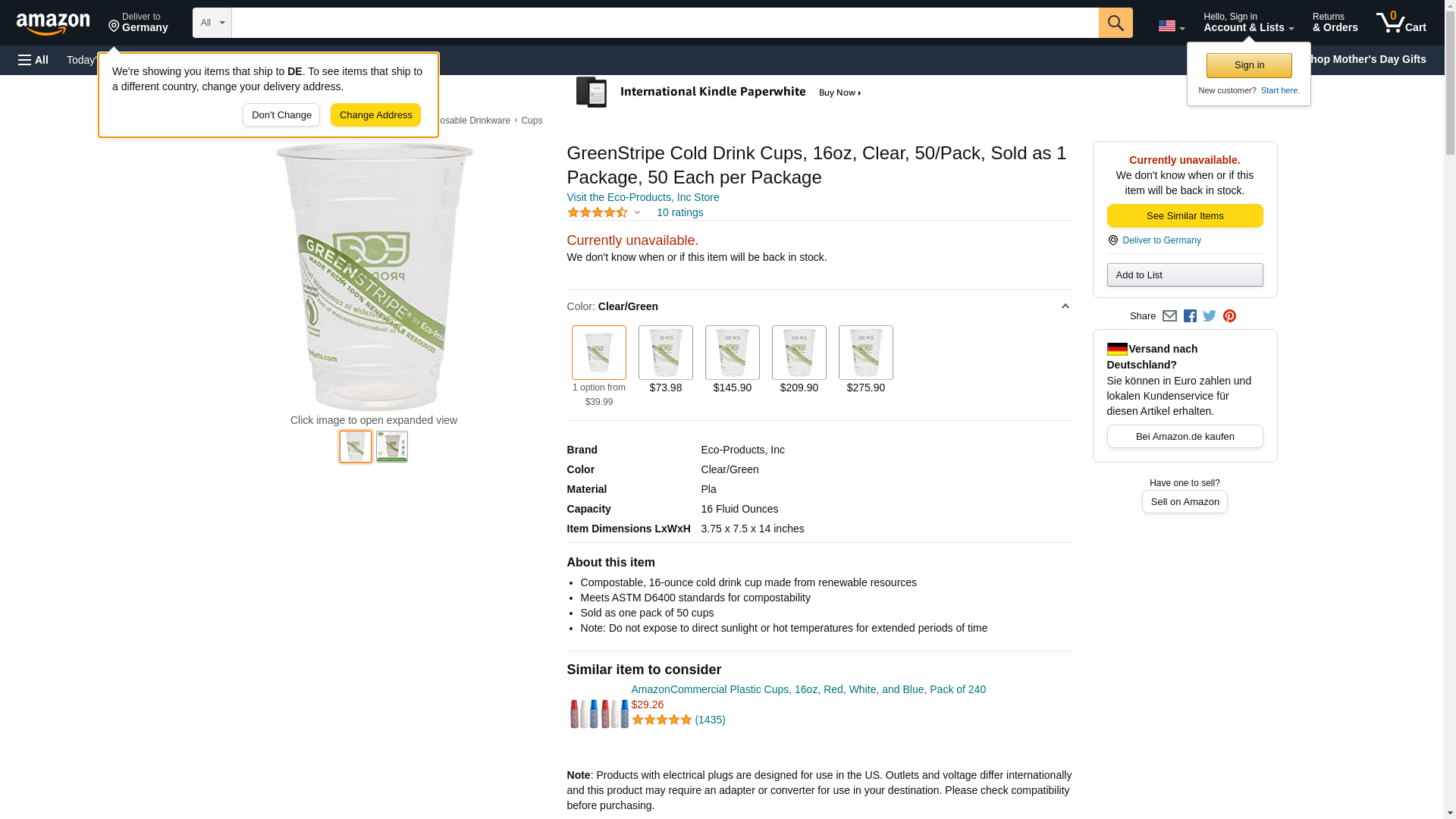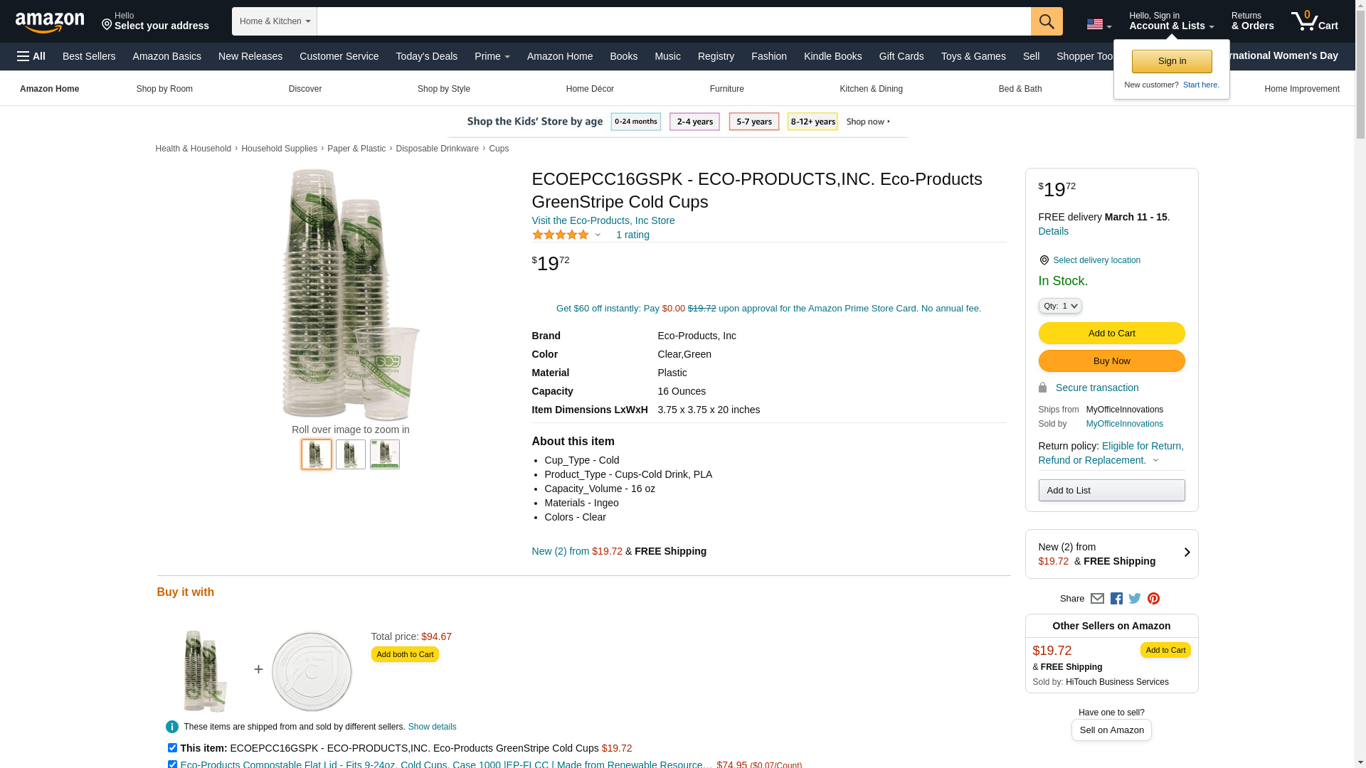 | Feature | ECOPRODUCTS EPCC16GSPK GreenStripe Cold Drink Cups, 16oz, Clear, 50/Pack |