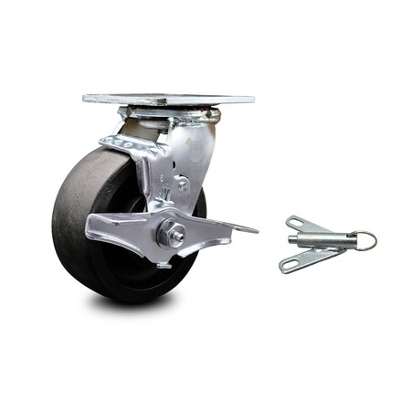 Glass Filled Nylon Swivel Top Plate Caster w/Maintenance Free Bearings & 5" x 2" Black Wheel & Top Lock Brake and Bolt on Swivel Lock - 1250 lbs Capacity/Caster - Service Caster Brand