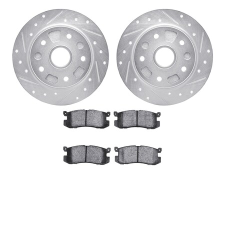 Dynamic Friction Company Rear Brake Rotors-Drilled and Slotted-Silver with 3000 Series Ceramic Brake Pads 7302-80027