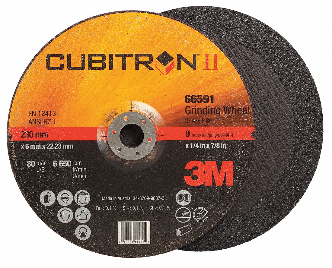 Depressed Center Wheels, Type 27, 9" Dia, 1/4" Thick, 7/8" Arbor Hole Size, Ceramic