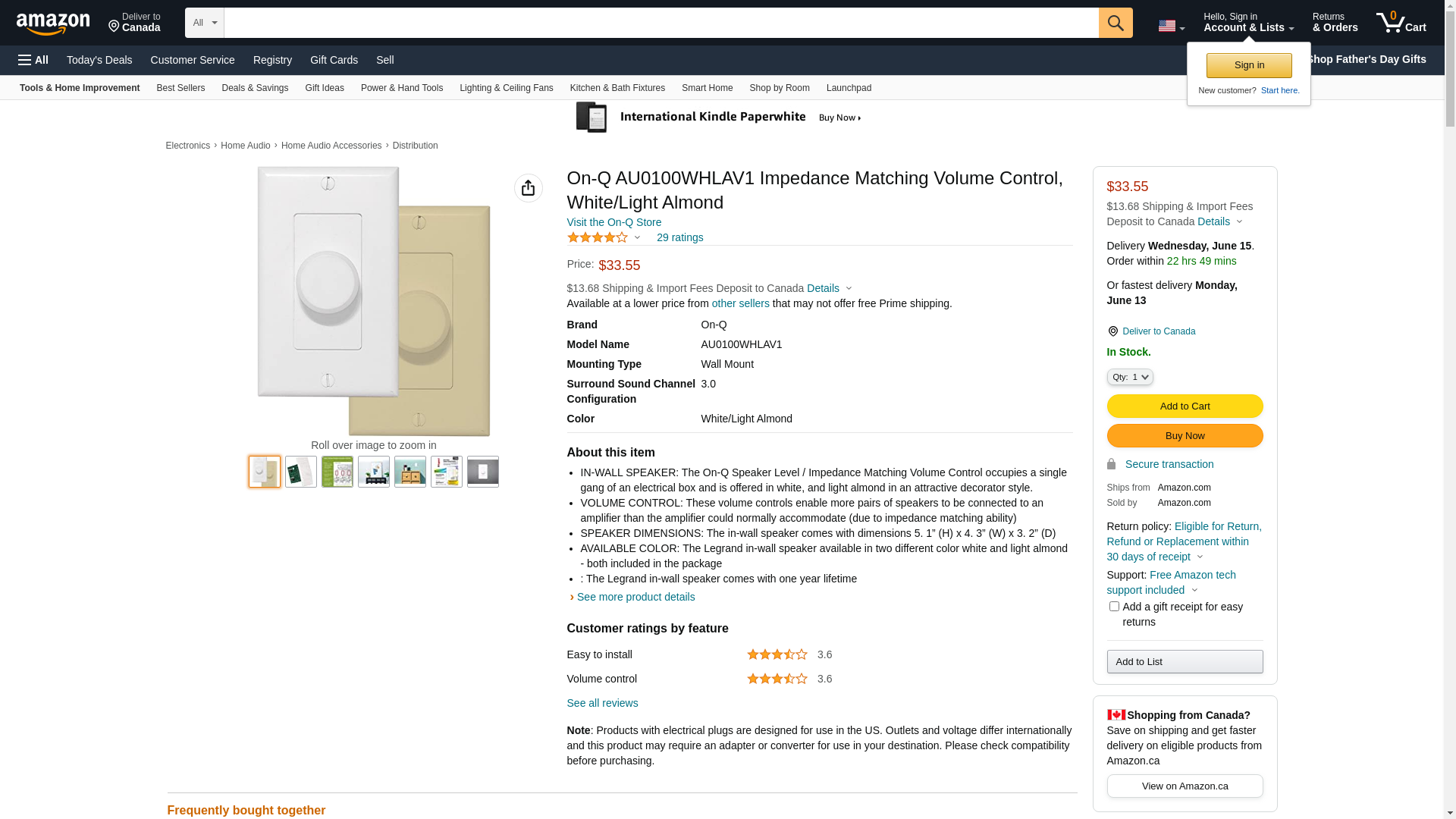 - IN-WALL SPEAKER: The On-Q Speaker Level / Impedance Matching Volume Control occupies a single gang of an electrical box and is offered in white, and light almond in an attractive decorator style.