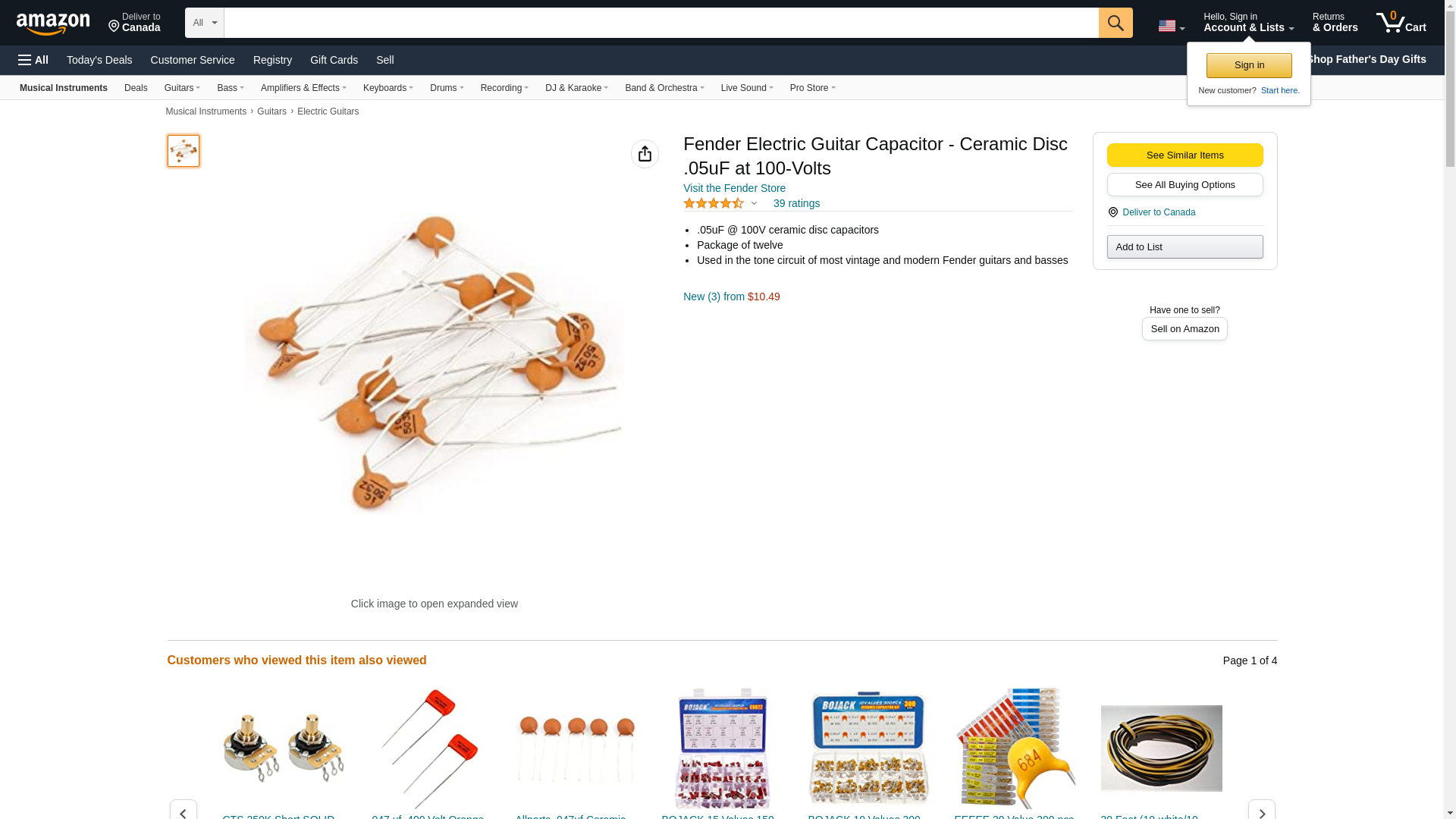 Fender Electric Guitar Capacitor - Ceramic Disc .05uF at 100-Volts