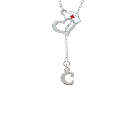 Small Silver Tone Initial - C Open Heart Nurse Hat Lariat Necklace. Silver Tone, hand enameled charms. Charm size is approx. 0.45 x 0.33 x 0.08 inches (HxWxD) including loop. Open Heart with Nurse Hat is approx. 0.68 x 0.71 x 0.13 inches (HxWxD). Great graduation gift or just to show your appreciation. Necklace is adjustable from 18 to 20 inches. Necklace comes with lobster claw clasp and 2 inch extender chain. We are a family owned company for over 35 years in the U.S.A. Designs are exclusive to Delight & Co. PLEASE NOTE: Our products are lead safe, but are not intended for children 14 years and younger.