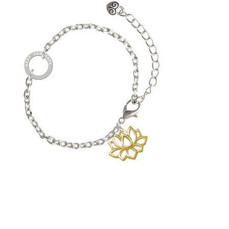 Gold Tone Lotus Outline - Keep Her Safe Eternity Ring Zoe Bracelet. Gold Tone Lotus Outline is approx. 0.62 x 0.75 x 0.11 (HxWxD) including loop. The lotus is the same on both sides. The Lotus flower can symbolize the clarity of heart as well as the mind. It also represents strength, good luck, long life as well as honor and respect. Bracelet is adjustable from 6.5 to 8 inches. If you would like a larger or smaller bracelet size please leave us a note or email us. Its circular shape is symbolic for endless belief in the message that is imprinted around the ring. These are motivational or sentimental messages to the wearer. Makes a great gift! Featured bracelet is an exclusive Delight & Co. design. We are a family owned company for over 35 years in the U.S.A. PLEASE NOTE: Our products are lead safe, but are not intended for children 14 years and younger.