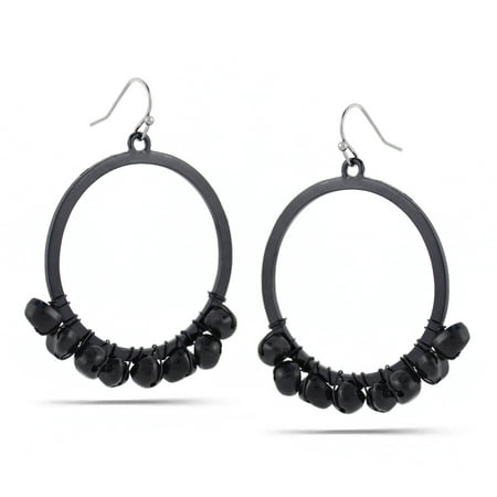 Black-Tone Metal Round Drop Earrings / Free Shipping Best Seller! APPROX.SIZE: 3.5"INCHES