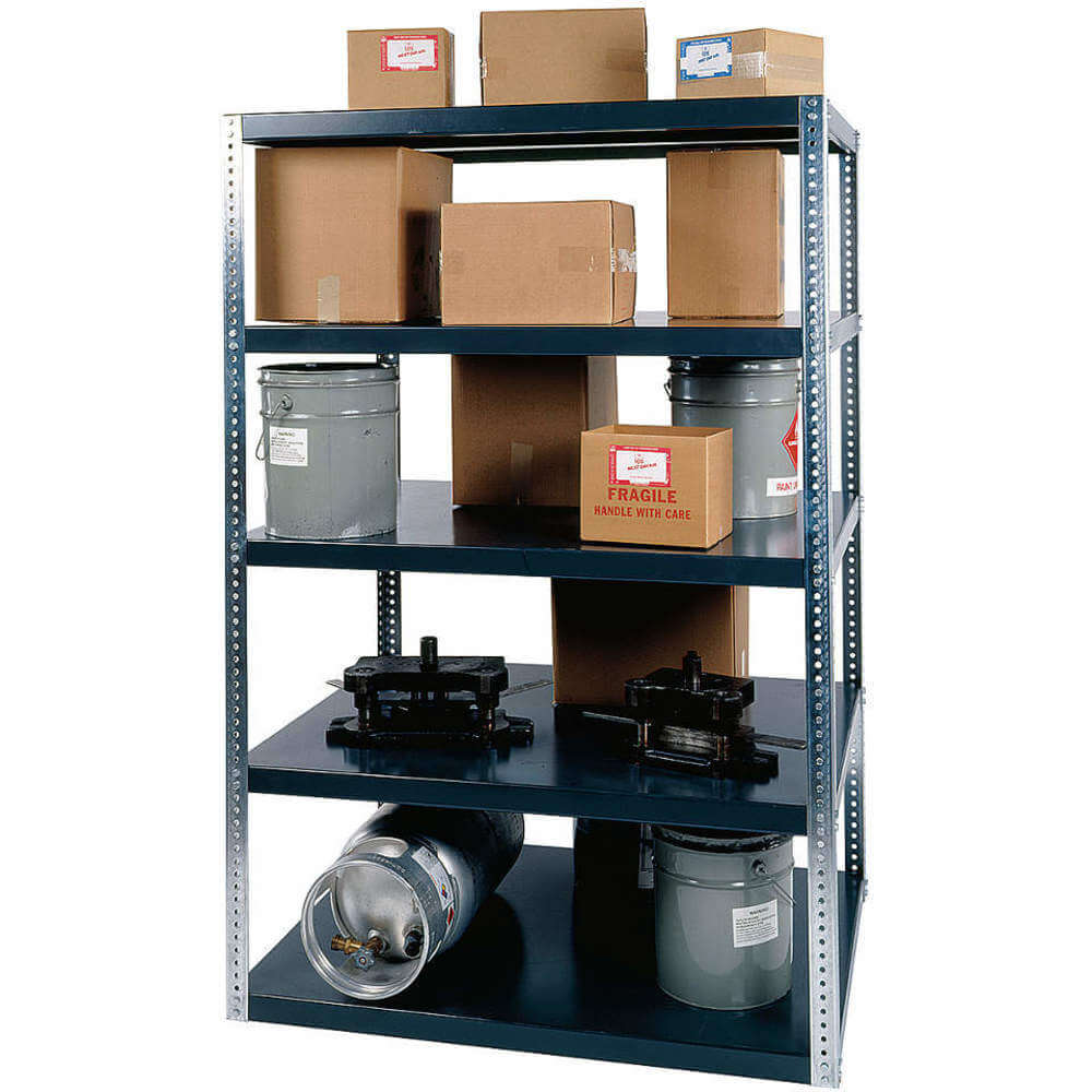 DURHAM Reinforced Shelving handles your most demanding storage requirements. Perfect for heavy storage, industrial supply storage or as tool and die rack. Huge 3000-lb. capacity per shelf when distributed evenly! Shelves are 14-ga. steel, channel-formed on 4 sides with stiffener underneath. Galvanized posts are 2x2", 12-ga. steel, punched on 1" centerswont scratch like painted possts. Comes complete with 4 posts, 5 bolt-on shelves and all hardware for assembly. Ships unassembled.
