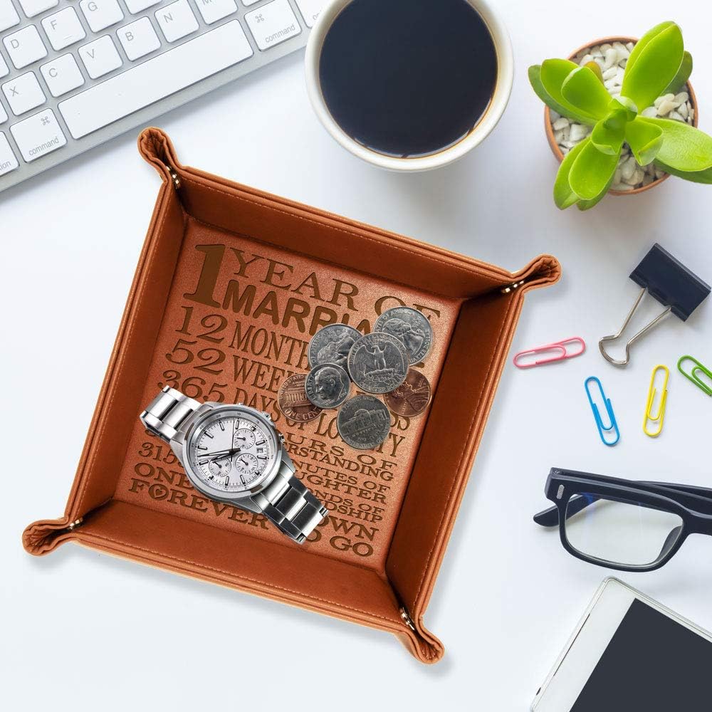 This convenient tray is a great way to organize essentials at home, in the office or on the go. It?s crafted in richly rawhide leatherette and finished with pinched snap corners. It?s a perfect gift to give, or get. - 1st anniversary gifts, 1 year of marriage, 1 year as husband and wife, gifts for him, for husband, gifts for my best friend and better half.