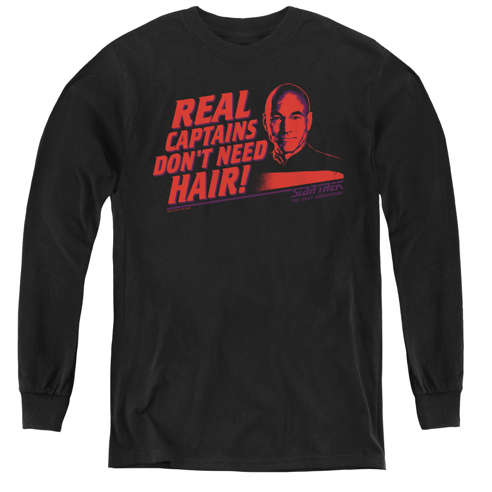 Trevco CBS954-YL-1 Star Trek & Real Captain - Youth Long Sleeve Tee, Black - Small