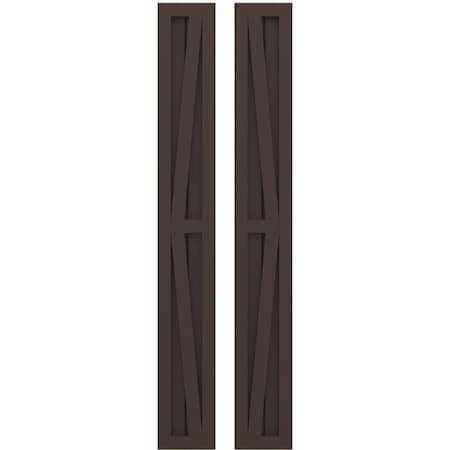 Ekena Millwork ARW102BF207X44TBH Americraft Exterior Real Wood Two Equal Panel Framed Board-n-Batten Shutters w/Double Z-Bar (Per Pair), 7"W x 44"H, Raisin Brown