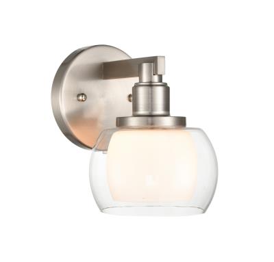 Quite the contemporary lighting addition to the home, the Cairo is as elegant as it is simple. With a clear outer glass shade and a smaller matte opal inner glass, this small sconce cant help but give off a dreamy, candle-like glow.