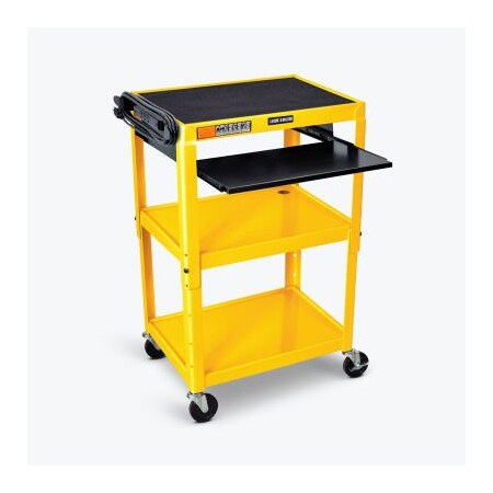 Luxor Adjustable-Height Steel AV Cart - Pullout Keyboard Tray Yellow