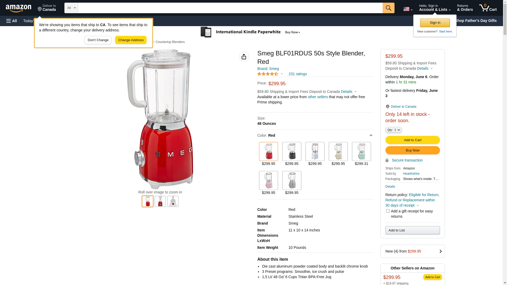 Smeg Countertop, Red 50s Style Blender, 48 Ounces