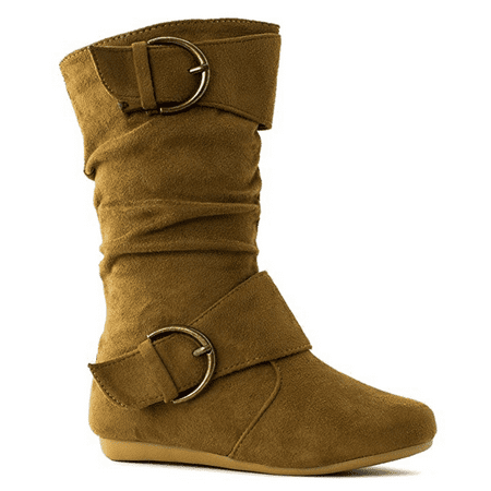 New Girls Slouch Comf Tall Midcalf Suede Winter Boots Shoes (Toddler/Little Kid/Big Kid) (Tan-Kln70k- 1 Little Kid)