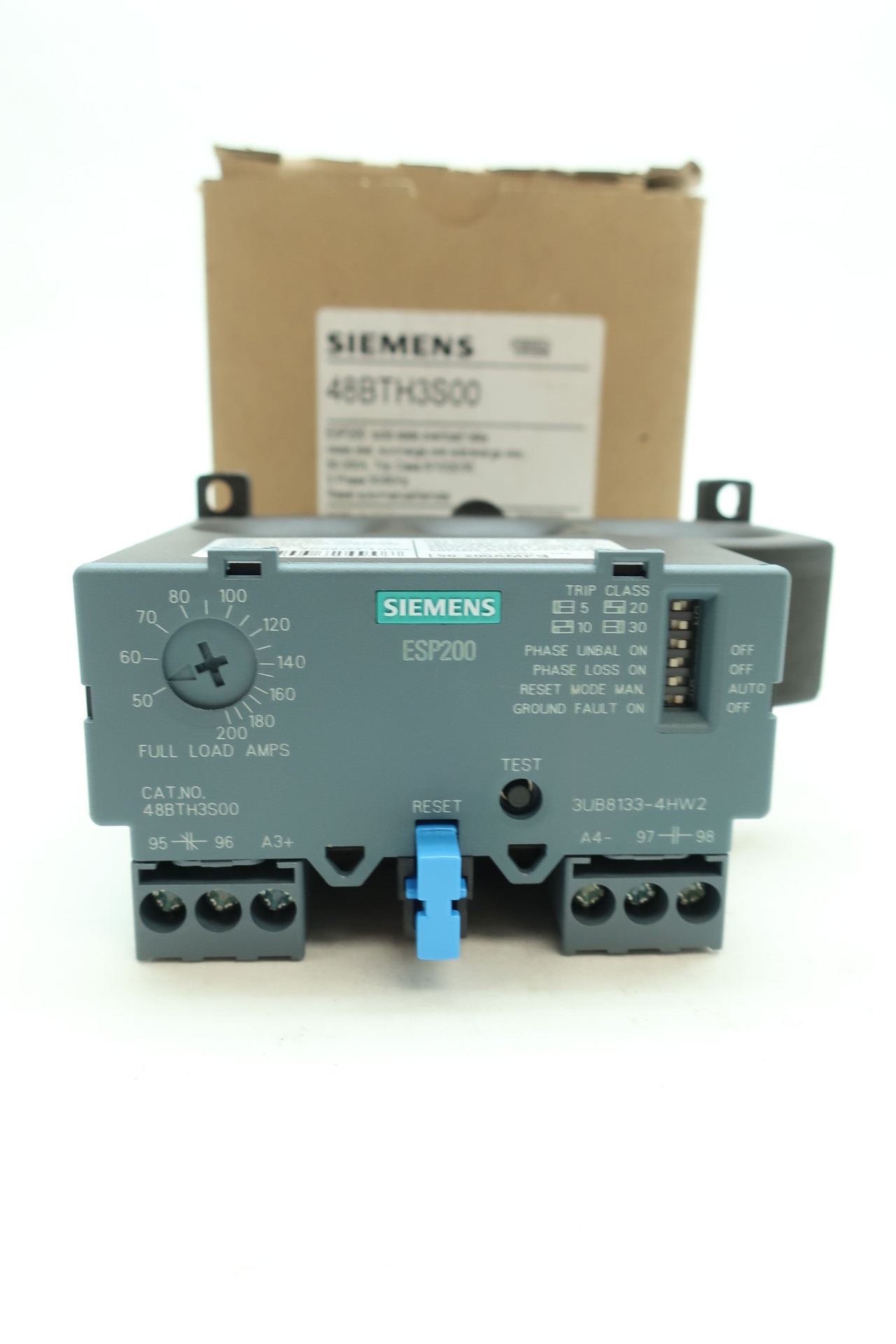 Siemens 3UB81334HW2 Solid State Overload Relay, ESP200 Catalog No. 48BTH3S00, 50 to 200A, Frame Size B, 3-Phase, Class 5/10/20/30 Adjustable, Manual/Automatic Reset