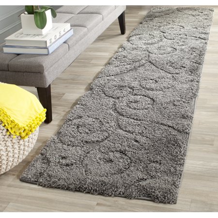 SAFAVIEH Florida Shag Collection Runner Rug - 2'3" x 13', Grey, Scroll Design, Non-Shedding & Easy Care, 1.2-inch Thick Ideal for High Traffic Areas in Living Room, Bedroom (SG455-8013)