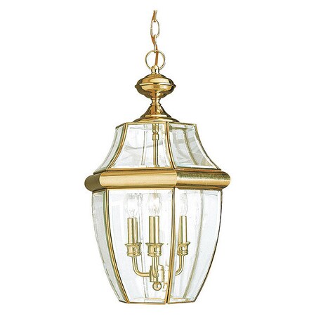 Sea Gull Lighting Generation 6039EN-02 Traditional Three Light Outdoor Pendant from Seagull-Lancaster Collection in Chrome Finish, Polished Brass