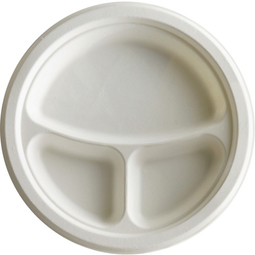 Eco-Products EPP007 Renewable & Compostbl Sugarcane Plates Club Pack - 10-Inch 3-Cmpt, 50/PK, 10 PK/CT