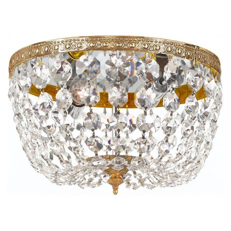 710-OB-CL-MWP Finish: Olde Brass, Crystal: Majestic Wood Polished Image shown in olde brass Features: -Crystal Basket.-Available in olde brass or chrome.-Available in Italian, Majestic Wood Polished, Swarovski Spectra and Swarovski Strass crystal.-Italian: Molded not cut; an ideal budget crystal.-Majestic Wood Polished: Hand cut on an iron then on a sandstone wheel; each piece is authentic and contains lead to make the crystal more reflective.-Swarovski Spectra: Precision cutting and superior light reflection; quality at an affordable price.-Swarovski Strass: Finest crystal in the world; laser cut for razor sharp cutting of facets; treated with invisible coating and contains lead to make the crystal more reflective. Specifications: -Accommodates (2) 60 watt candelabra base incandescent bulbs (not included). Dimensions: -Overall dimensions: 5'' H x 10'' Dia. Collection: -Bohemian Crystal Collection.