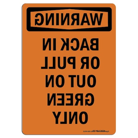OSHA WARNING Sign, Back In Or Pull Out On Green Only, 14in X 10in Aluminum