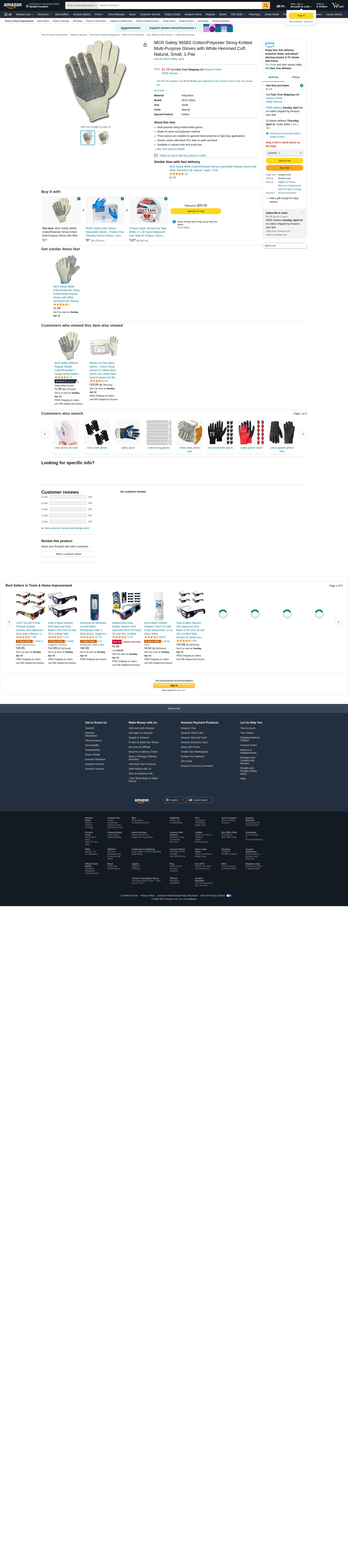 MCR Safety 9658S Cotton/Polyester String Knitted Multi-Purpose Gloves with White Hemmed Cuff, Natural, Small, 1-Pair....
