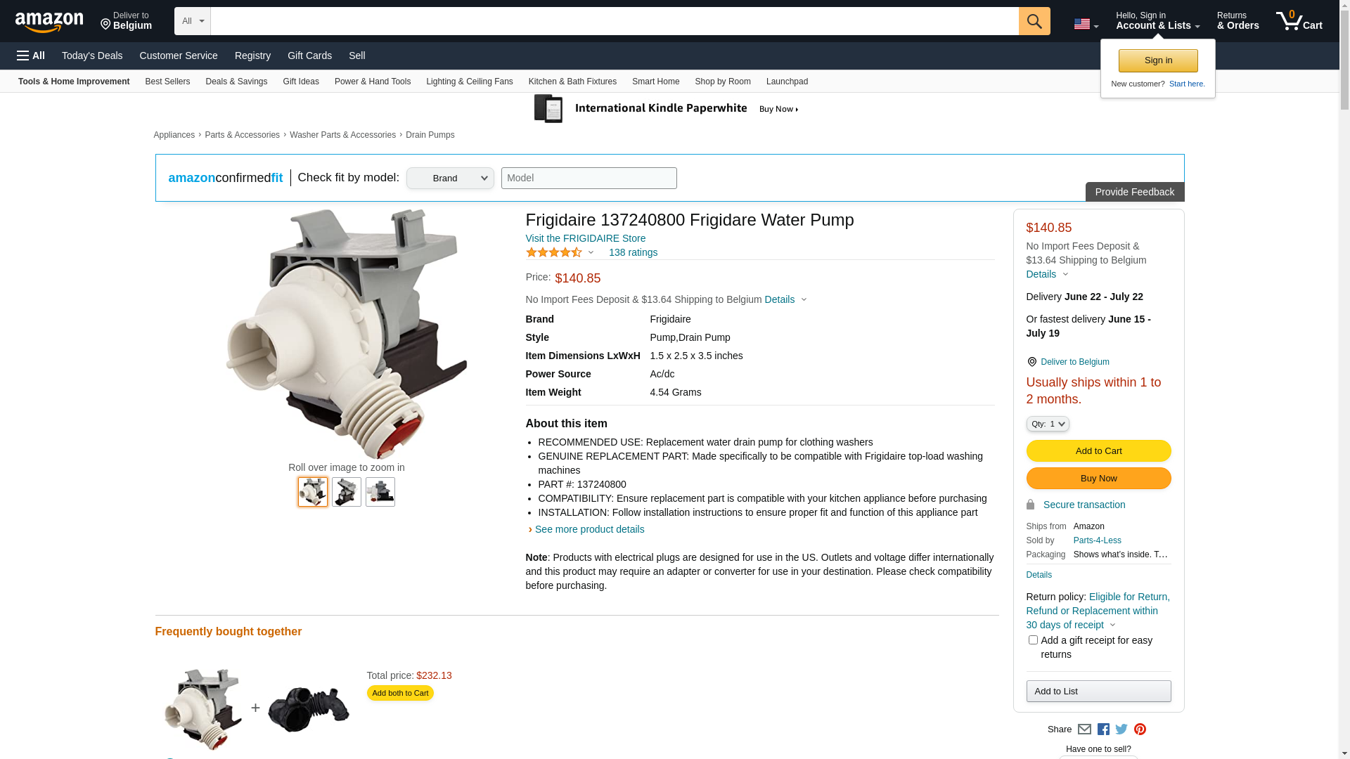 Frigidaire Pump-Water - 137240800