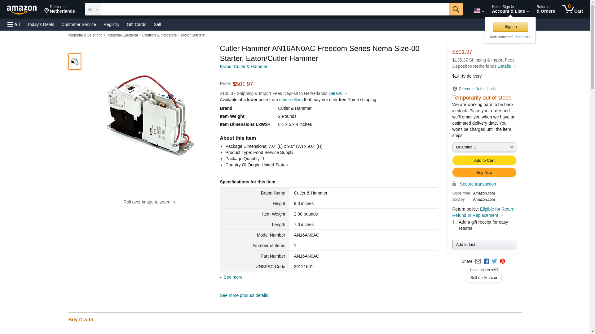 Part Number: 782113971414 <br> Part: Eaton AN16AN0AC NEMA Full Voltage Non-reversing Starter <br> NEMA Full Voltage Non-reversing Starter, Freedom, 3-phase Magnetic, Size 00, 3-pole, Interchangeable Heater Overload Relay, 120 Vac/ 60 Hz - 110 Vac/ 50 Hz Coil <br> Amps: 9 <br> Poles: 3 <br> Phase: 3 <br> Type: Thermal Overload, NEMA, Starter, Non-Reversing <br> Volts AC Control: 120 <br> Also known as: 782113971414, Stater;non-reversing;Freedom;AN16;Nema 00, CUTAN16AN0AC, Eaton, AN16AN0AC, NEMA Size 00, Open Motor Starters, Starters & Contactors, Control, Automation, Cutler-Hammer, Westinghouse <br> Equivalent to: <ul></ul>