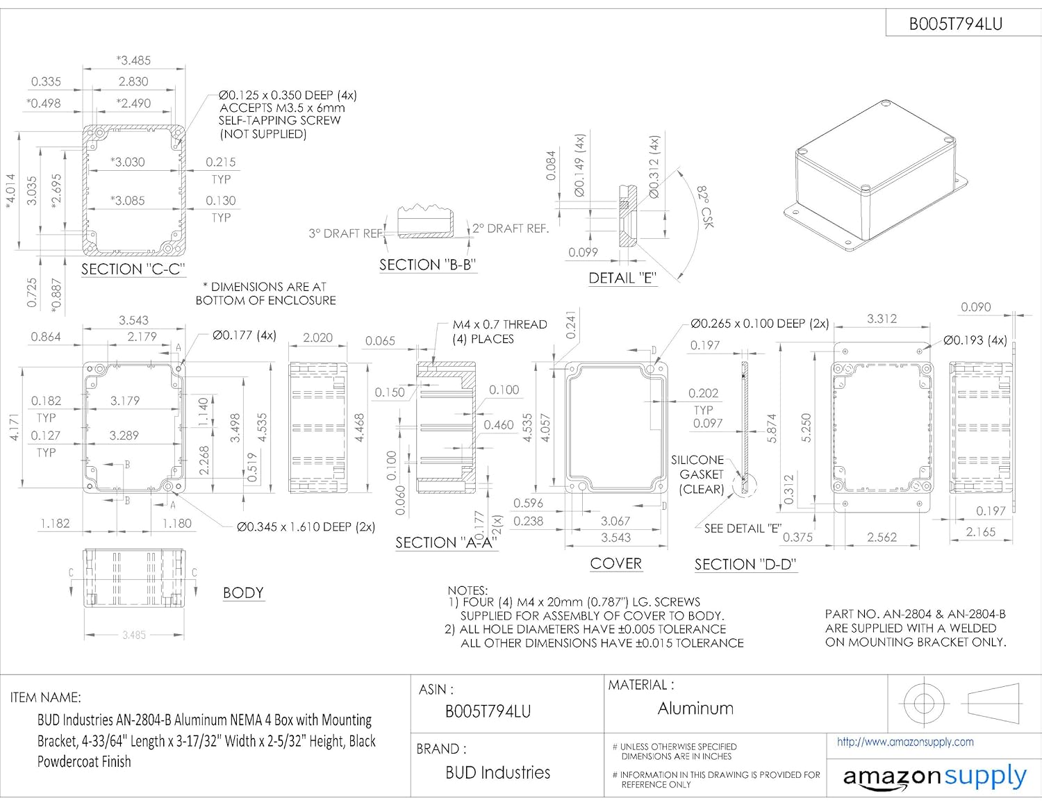 Bud Industries AN-2804-B Boxes, Enclosures and Racks