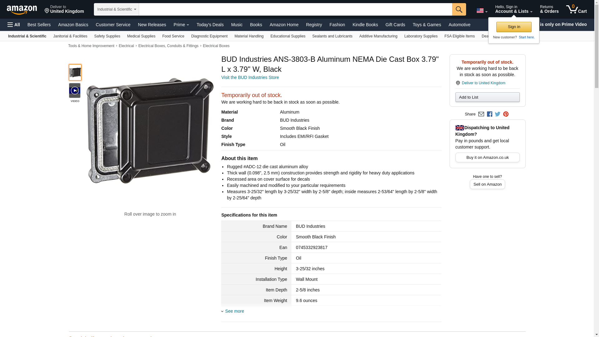 Bud Industries Enclosure, Emi/rfi, Aluminium, Black - ANS-3803-B