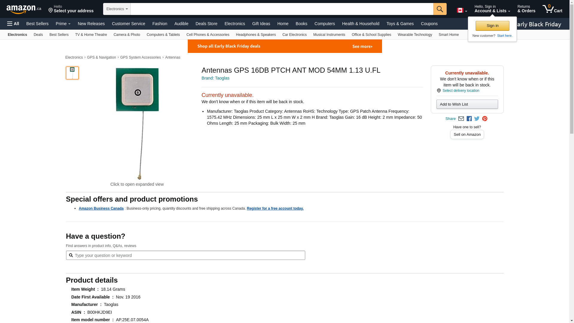 | Waldom | TAOGLAS AP.25E.07.0054A | 10 | 121 | 1 | 10 @ $7.81, 35 @ $7.66, 65 @ $7.52, 120 @ $7.23 |